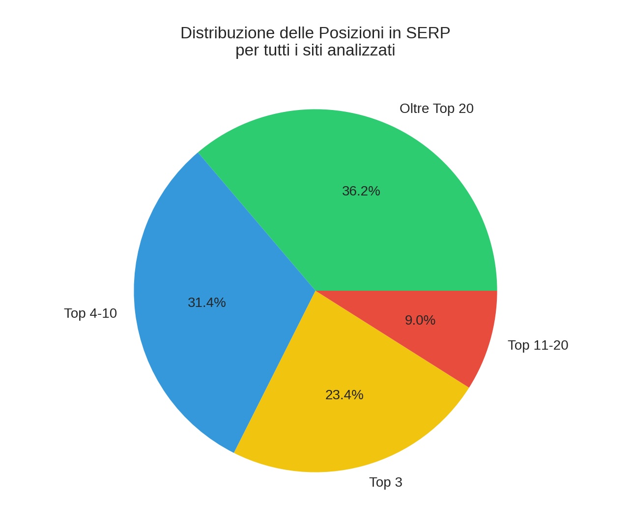 Questo grafico a torta mostra chiaramente come una presenza sul portale garantisca posizionamenti di qualità, con una significativa percentuale di keyword nelle posizioni più visibili.