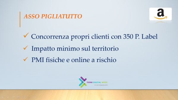 Ho parlato di Amazon e di eShoppingAdvisor Sabato 28 Settembre nel corso del mio speech al “Terni Digital Week”, un evento che ha portato un’importante ventata di innovazione e novità in un territorio nel quale eventi di questo tipo stentavano a decollare.