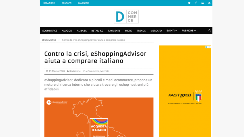 Si chiama eShoppingAdvisor, è il primo motore di ricerca specializzatoesclusivamente sui piccoli e medi e-commerce italiani ed è la risposta alle difficoltà incontrate dalle attività economiche a causa dell’emergenza del Coronavirus. Un mondo, quello dei piccoli produttori, che rischia altrimenti di subire danni incalcolabili – fino alla chiusura definitiva dell’azienda – per via del radicale cambiamento dello stile di vita dovuto alle misure previste per il contenimento del contagio da Covid 19. Le piccole e medie imprese in Italia sono…