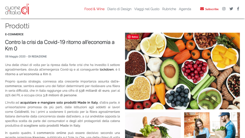 Una delle chiavi di volta per la ripresa dalla forte crisi che ha investito il settore agroalimentare, dovuta all’emergenza Covid-19 e al conseguente lockdown, è il ritorno a un’economia a Km 0. Proprio questa strategia, connessa alla crescente importanza assunta dall’e-commerce, sembra essere uno dei fattori determinanti per risollevare una filiera in seria difficoltà, che in Italia raggiunge una cifra di 538 miliardi di euro, pari al 25% del Pil, e occupa circa 3,8 milioni di persone. L’invito ad acquistare…