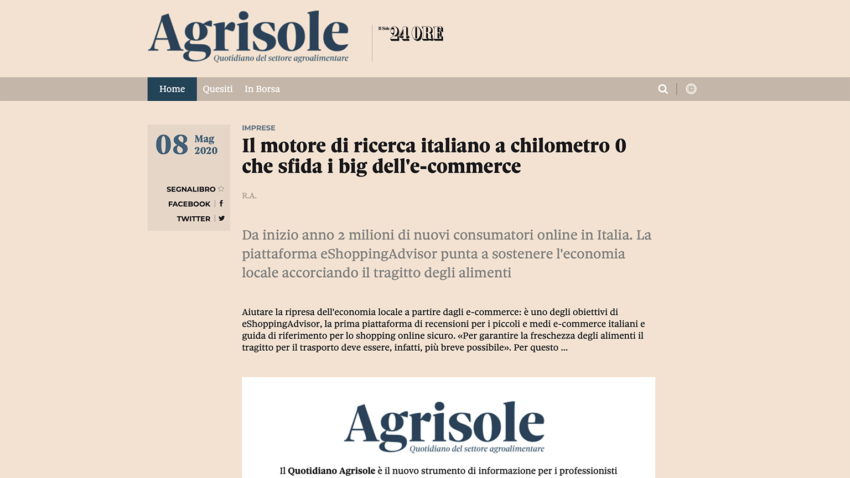 Da inizio anno 2 milioni di nuovi consumatori online in Italia. La piattaforma eShoppingAdvisor punta a sostenere l’economia locale accorciando il tragitto degli alimenti Aiutare la ripresa dell’economia locale a partire dagli e-commerce: è uno degli obiettivi di eShoppingAdvisor, la prima piattaforma di recensioni per i piccoli e medi e-commerce italiani e guida di riferimento per lo shopping online sicuro. «Per garantire la freschezza degli alimenti il tragitto per il trasporto deve essere, infatti, più breve possibile». Per questo eShoppingAdvisor…