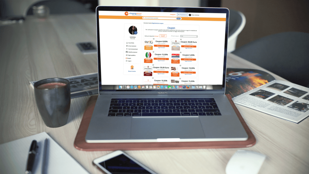 - Accedi al tuo profilo e controlla la sezione I tuoi Coupon per trasformare ogni punto ottenuto in un coupon (fino al 30% di sconto) utilizzabile presso il tuo e-commerce preferito.