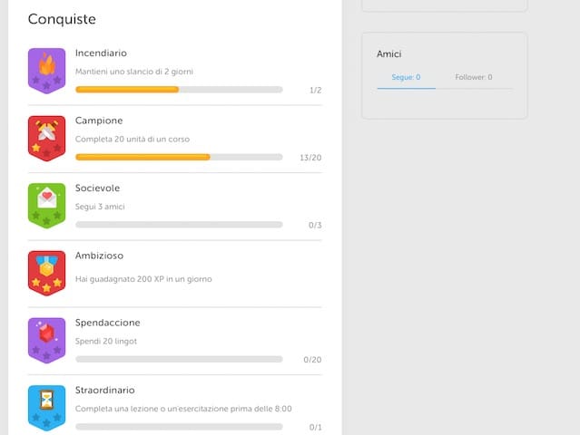 DUOLINGO: E’ un vero e proprio corso di inglese, francese, tedesco e spagnolo on line, nella versione base è gratuito ed è suddiviso per livello di difficoltà. Molto interessante e pratica la suddivisione in sezioni didattiche: dalla pronuncia all’ascolto. La strategia di Duolingo e Duolingo Plus (a pagamento) è quella di impostare sin dall’inizio la porzione di tempo che si intende dedicare ai corsi: Rilassato (5 minuti al giorno), Normale (10 minuti al giorno), Serio (15 minuti al giorno), Folle (20 minuti al giorno). Per conquistare punti e livelli sempre più alti, la piattaforma propone dei badge divertenti e colorati.