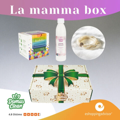 Domus Clean ha pensato a una Gift Box ideata esclusivamente per la Festa della Mamma. Se pensi che la tua mamma possa desiderare un regalo carino e utile allo stesso tempo, questa opzione potrebbe fare al caso tuo. La confezione, realizzata in modo da risultare molto elegante, contiene 1 scatola di granuli profumati Arcobaleno, 1 flacone di super profumatore per bucato e in regalo… 1 gioiello a scelta. Al momento dell’ordine potrai scegliere la combinazione che più ti piace, selezionando la profumazione dei prodotti preferita, e il gioiello che farà felice la tua mamma!