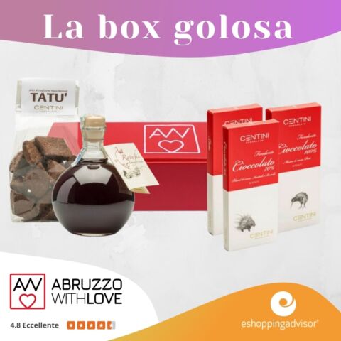 Se vuoi fare un regalo di gusto, in tutti i sensi, puoi scegliere la Box “Per la Mamma” ideata da Abruzzo with Love. Una selezione golosa che include un abbinamento di cioccolato e ratafia, antico liquore abruzzese che si usava bere a suggello di un accordo… perfetto anche per suggellare l’amore per la propria mamma. Nella scatola trovi: una barretta di cioccolato fondente integrale 85%, una barretta di cioccolato fondente 70% Centini, una barretta di cioccolato al latte Centini, il dolce tipico Tatù di Bisenti e, infine, una bottiglia del raffinato liquore dalle eleganti note ai frutti di bosco e amarena.
