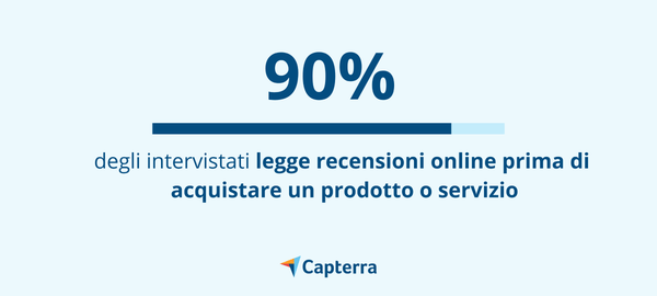 Pur trattandosi di una pratica diffusa e apprezzata nel web, la consultazione delle testimonianze di altri consumatori ha raggiunti livelli elevatissimi: secondo lo studio, fino al 90% dei consumatori leggerebbe recensioni prima di acquistare un prodotto o servizio.