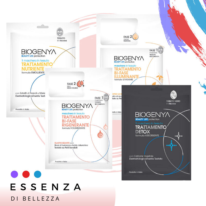 Nonostante la qualità molto alta, Biogenya non si priva di proporre ai propri clienti una sezione con prodotti scontati, che merita senza dubbio un’occhiata. Nella categoria In Promozione i Kit sono un’offerta veramente imperdibile: il Kit “Essenza di Bellezza” è studiato come un intero programma rigenerante per la pelle del viso che comprende una Maschera Viso Detox per purificare la pelle, una Maschera Viso Nutriente/Idratante per nutrire in profondità, una Maschera Viso Illuminante che leviga e dona luce all’incarnato e infine una Anti-age, per attenuare i segni del tempo ed avere una pelle dall’aspetto più giovane.