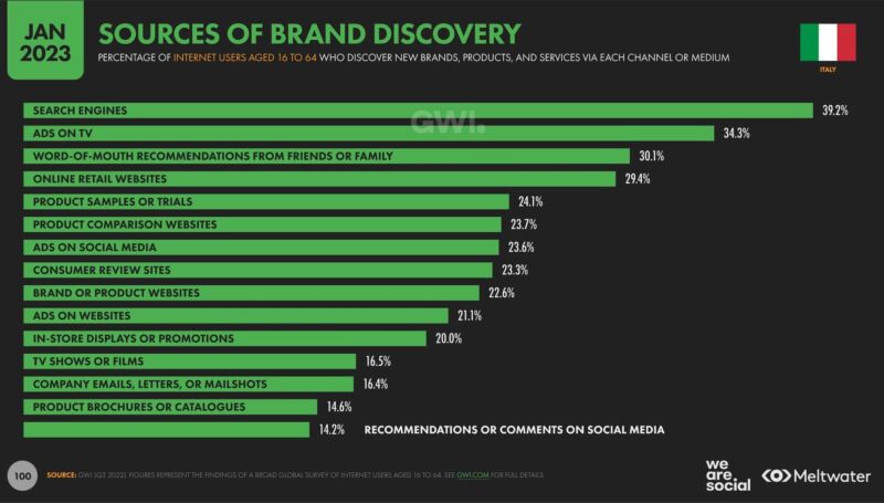 I canali per trovare marchi e prodotti: 2 su 5 arrivano da Google