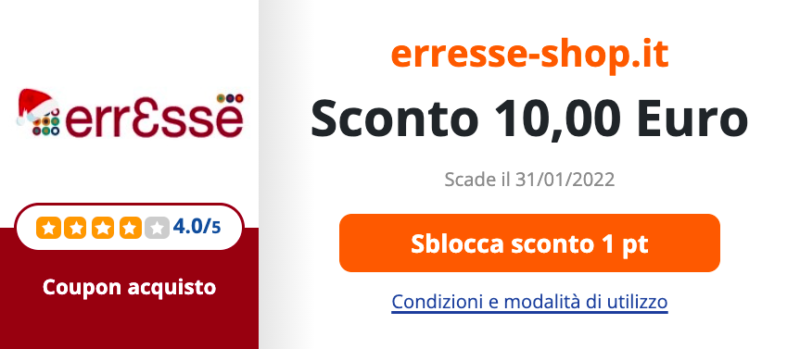 Erresse Shop ha messo a disposizione della community di eShoppingAdvisor questo coupon sconto dal valore di 10 euro