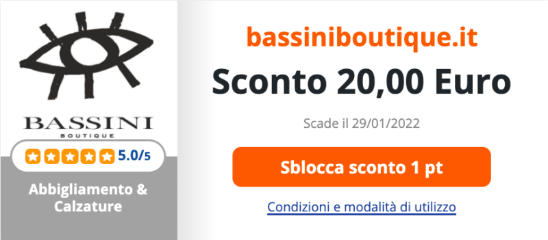 Bassini Boutique ha messo a disposizione della community di eShoppingAdvisor questo coupon sconto dal valore di 20 euro
