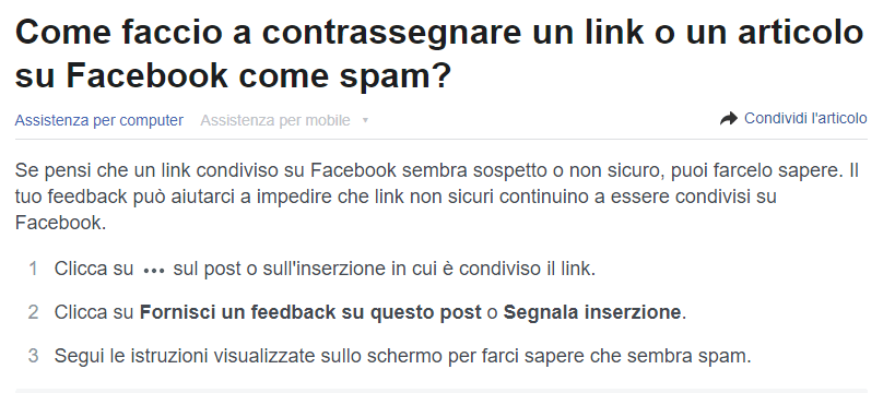 I social inoltre ti permettono di segnalare le inserzioni. Ecco per esempio come puoi farlo su Facebook: