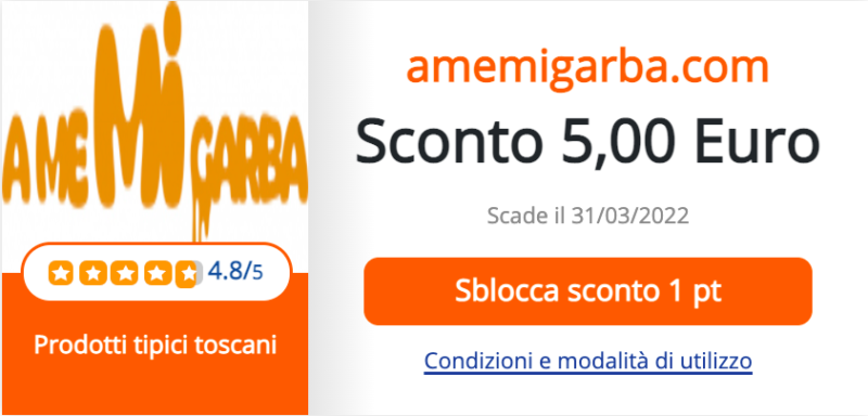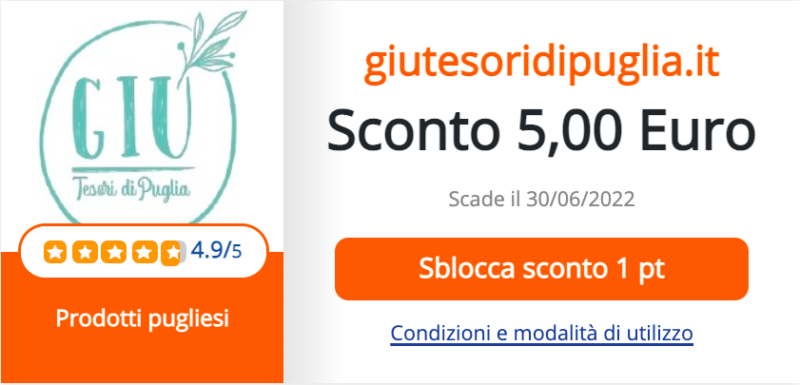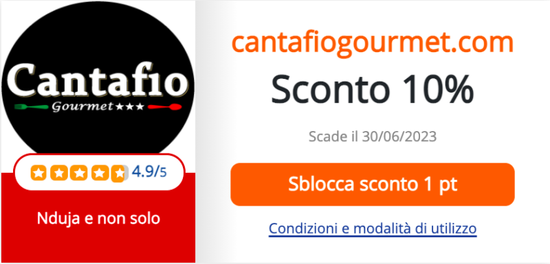 Su eShoppingAdvisor, infatti, puoi trovare anche centinaia di coupon sconto messi a disposizione dagli eCommerce affidabili per acquistare prodotti eccellenti a prezzi davvero competitivi. Il team oggi ha selezionato per te i migliori coupon per acquistare prodotti tipici regionali, non ti resta che scoprirli tutti!